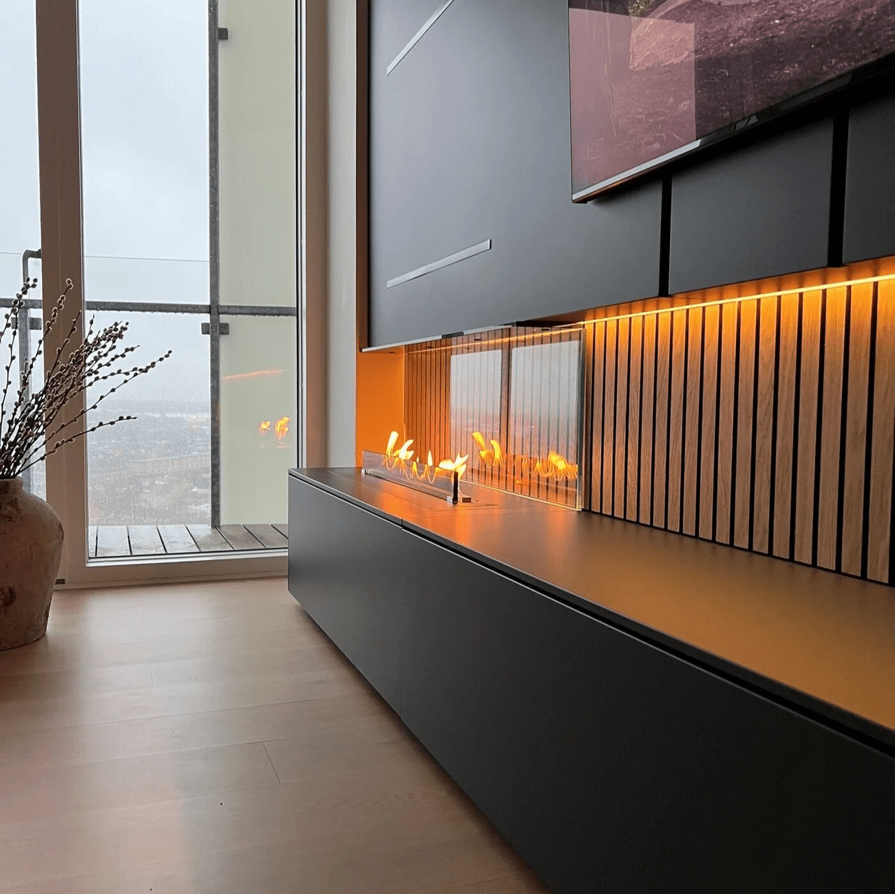 Decoflame Net Zero F6 net zero fireplaces range from 620 mm to 3920 mm in length. Developed and manufactured locally, these burners offer exceptional flexibility for any project size. The Denver F6, designed by Decoflame’s expert engineers, is a groundbreaking innovation in modern fireplaces. Equipped with BEV (Burning Ethanol Vapour) technology, it represents the pinnacle of luxurious supplementary heating solutions.