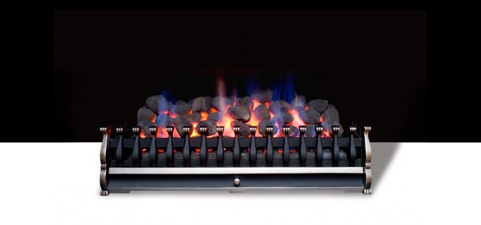 Large rounded coal pieces give this deluxe coal burner its intense captivating glow.