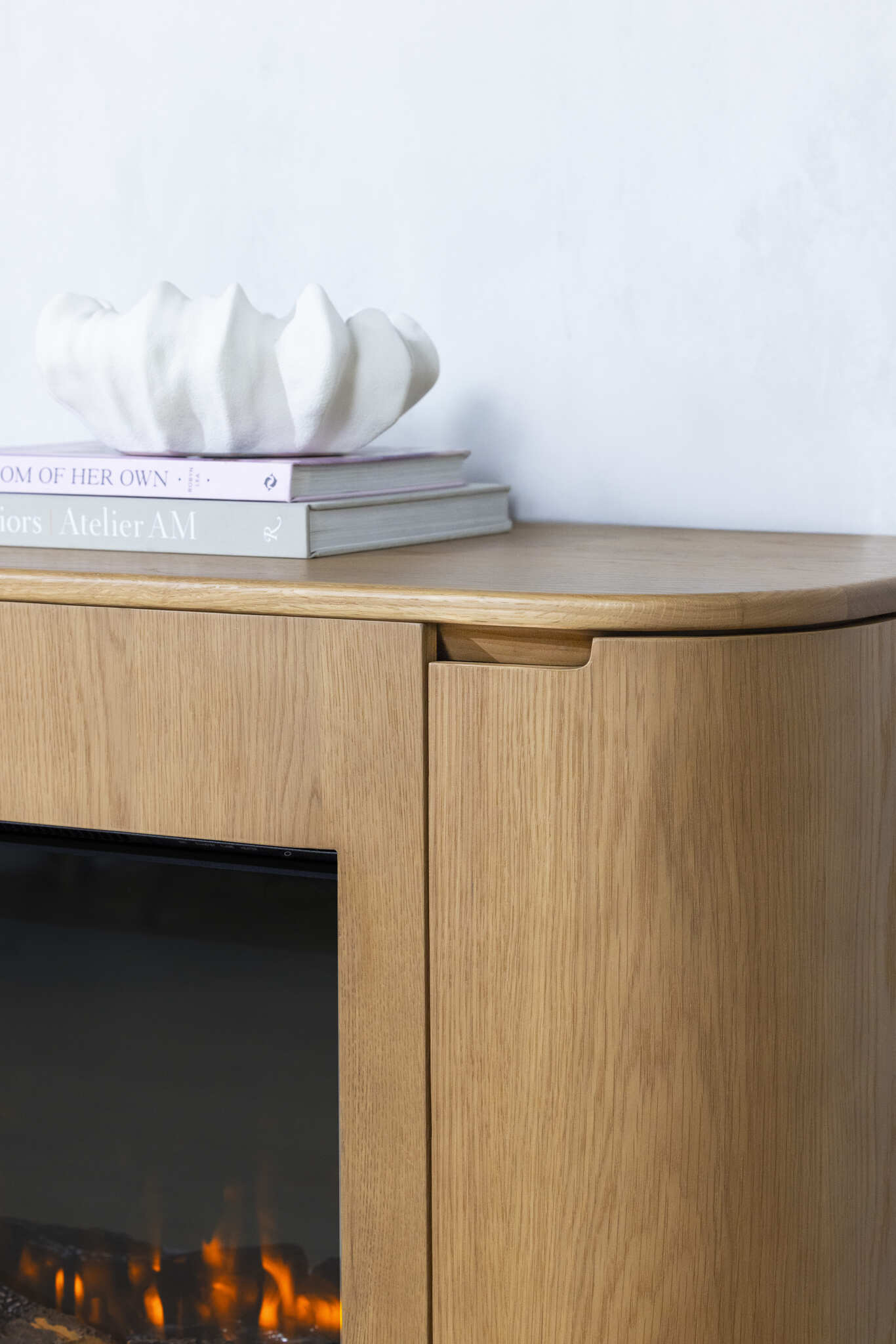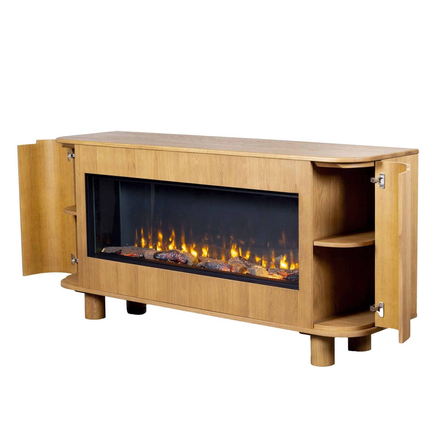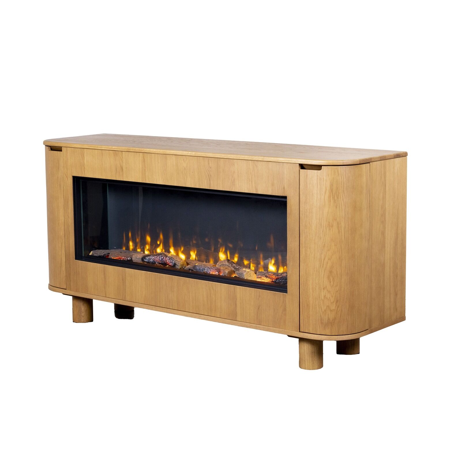 The Ashton 180 Ember Arc fireplace cabinet is designed to bring modern style and functionality into your home. Its compact size makes it a smart choice for smaller spaces, while the smooth, rounded edges and high-quality oak construction give it a sleek, contemporary look. Available in black, white, gray, and natural oak finishes, this cabinet offers versatility to suit a range of interiors. It’s a standout piece that adds warmth and character to your living space without taking over the room.