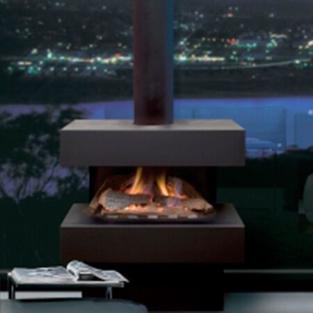The Freestander features a floating burner inside a metal base with exposed flue, and it provides beautiful, radiant warmth, able to heat 30 square metres. Its compact size makes it an ideal space saver, perfect for limited spaces or for rooms with large windows and cathedral ceilings.