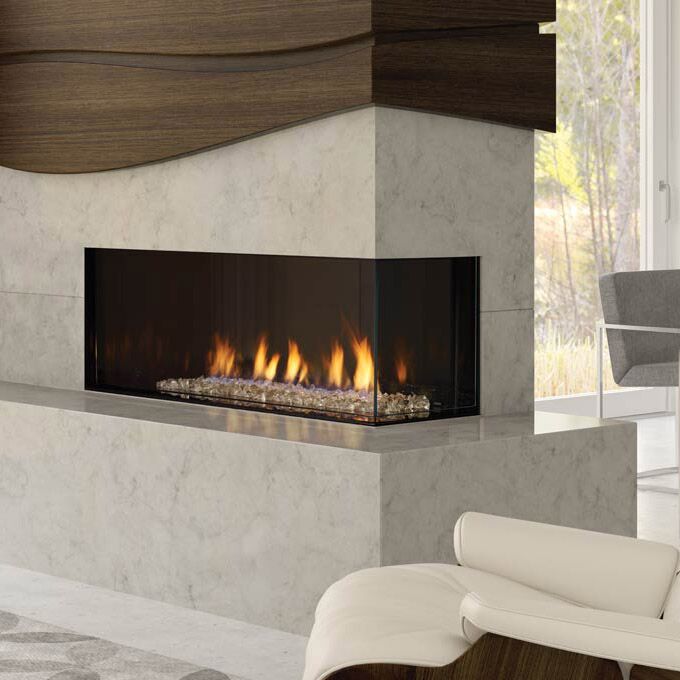 The Regency City Series Chicago corner two sided gas fireplace allows you to have design flexibility creating multiple views from either side of the room.