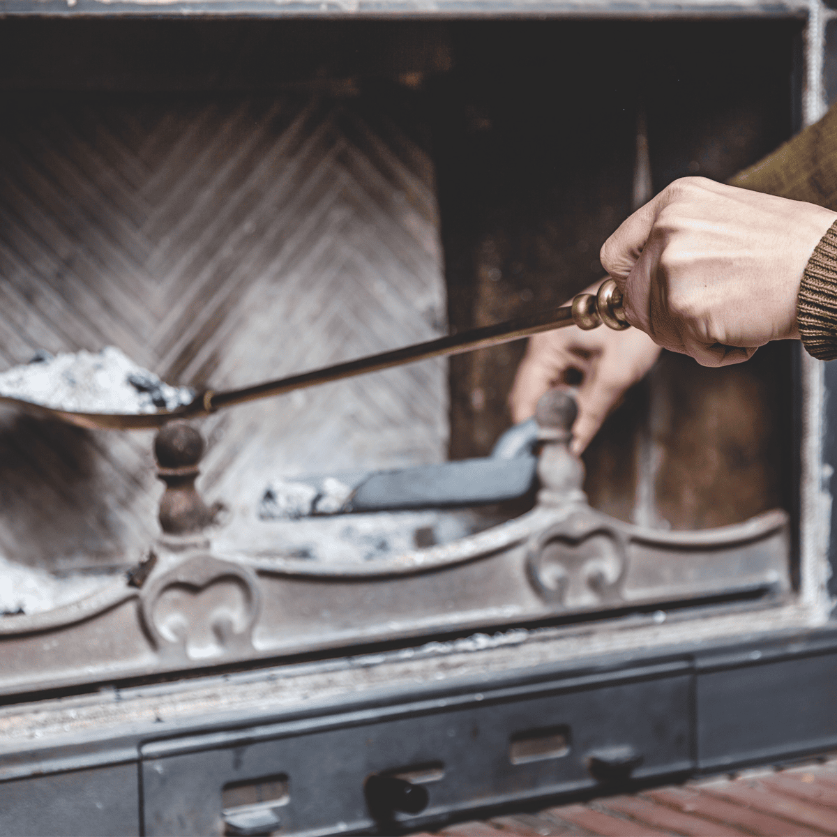 - Clear out loose ash and debris – Use a metal scoop or small shovel to remove cold ash into a metal bucket. A vacuum with a proper ash filter can help with the fine dust, but never use a regular household vacuum on warm or smouldering ash.